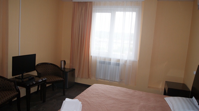 Двуспальный номер, оснащенный современной удобной мебелью. Тщательно подобранный интерьер создает атмосферу уюта и комфорта для плодотворной работы или беспечного отдыха.